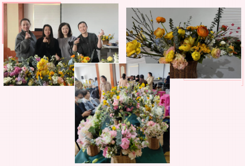 花是美好生活的象征,將春光插進(jìn)花束里,別有一番美麗,在花香繚繞中,大家共同度過(guò)了一個(gè)愉快的節日,此次活動(dòng)不僅讓大家學(xué)到了插花知識,在豐富了其日常文化生活的同時(shí)還享受插花藝術(shù)的樂(lè )趣,提高了生活熱情,陶冶了情操。在溫馨浪漫的氛圍中,活動(dòng)圓滿(mǎn)結束。